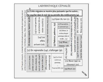 "Céphalée" , dit la migraine. Je n'ai pas mal à la tête, mais j'ai choppé un torticolis. Il faut avoir labytude. En tout cas pour ma prochaine migraine, je penserai au techno-dragon. Sympathique laby façon puzzle.