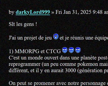 Extrait du post d'annonce de recherche d'équipe sur forum.